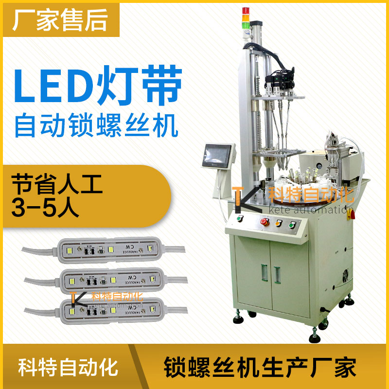 led燈帶是指把LED組裝在帶狀的柔性線路板或PCB硬板上,產品形狀象一條帶子又非常節能和綠色環保,用于各個行業中的裝飾,LED燈帶的使用也越來越普及,也因為使用壽命長(一般正常壽命在8~10萬小時),所以在市場上需求也比較大。 LED燈帶是采用FPC做組裝線路板,生產組裝過程中都需要對燈具貼片和各個工件進行螺絲緊鎖加工,在傳統的生產線上,技術工人需要對不同型號的燈具體分別進行螺絲鎖緊加工操作,雖然也應用了自動機器人之類的自動設備,但是傳統生產線的自動化水平還比較低,不能適用于不同型號的燈具加工,設備的自動化水平還需提高。 本案例應用于LED燈帶自動化生產線的自動鎖螺絲機,主要目的在于解決生產中的不足和缺點,設計一臺自動化燈具生產螺絲設備,它不僅可以對燈具進行自動化地組裝、鎖緊加工操作,而且可以適用于不同型號、規格、大小的燈具體,設備的自動化水平比較高。 該設備根據產品進行設計多工位轉盤式螺絲機,通過在轉盤式安放多個工位實現多工序同步作業,主要是為了實現擰螺絲和取放產品同步完成,作業員不停放置產品,設備不停擰螺絲,增強了人機協作,較大幅度提升效率,減輕人工勞動強度。